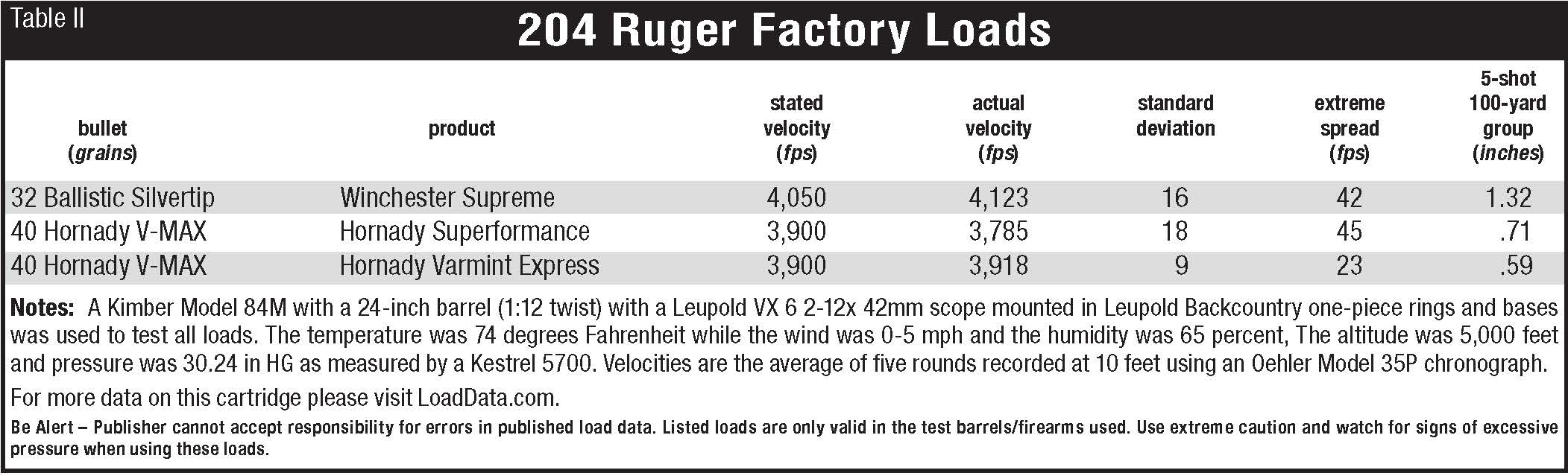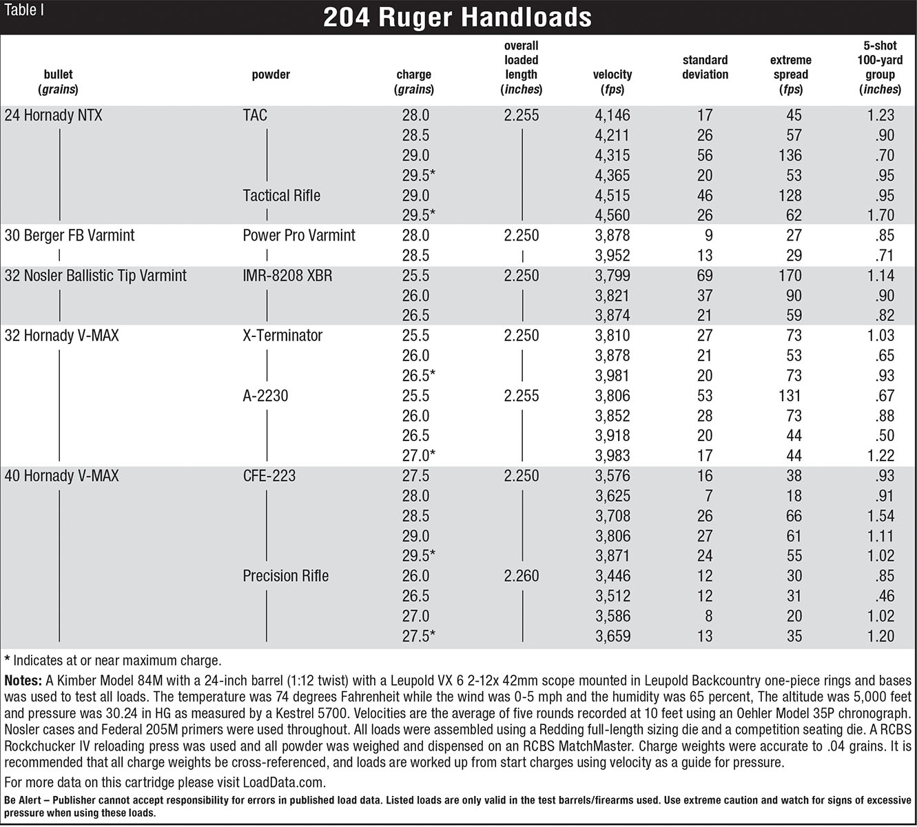 If you would like to watch the accompanying video to this article, check out the video titled “204 Ruger in a Kimber 84M Varmint” on our YouTube channel Handloader TV.