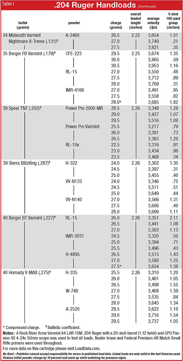 The more important takeaway is to never assume anything. I was reminded – yet again – that quality ARs are capable of bolt-gun accuracy. Bantamweight bullets are capable of fine accuracy. Budget-priced bullets are nothing to get snooty about and the 204 Ruger’s 1:12 rifling twist is adequate for the heaviest bullets with the right load combination. Rock River Arms’ AR was ultra-gentle on the shoulder, provided good accuracy and was a real hoot in the field, which was exactly where that rifle was headed next.
