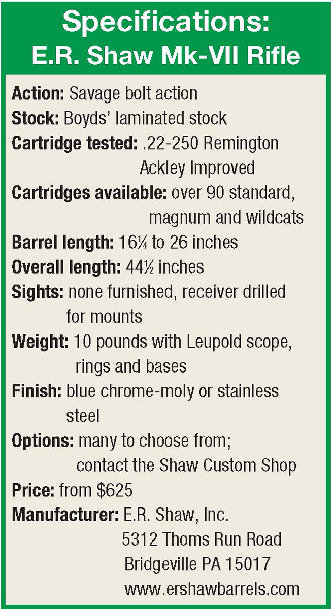 Since the Savage action has been covered in detail many times in Rifle and Handloader, I’ll just skim over the basics and how it fits into the Shaw concept of its company rifle. For one thing, rather than experience the expensive tooling costs that are generated by starting from scratch with a new rifle and receiver, through a licensing agreement with Savage Arms, E.R. Shaw has combined one of the most popular actions in the shooting sports with that of its finely honed barrels. There are details, however, that separate both companies and their final products.