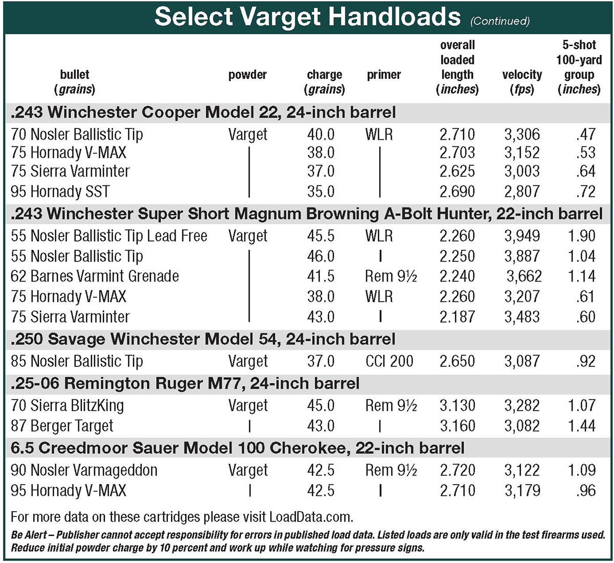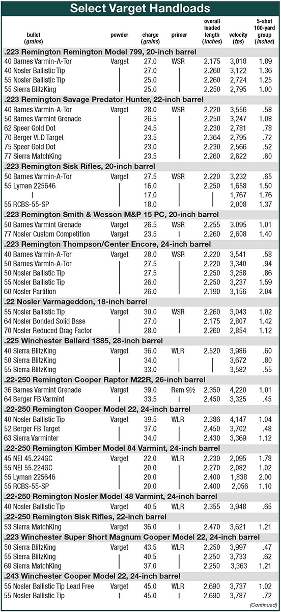 Those good results shooting Varget also apply to a variety of loads for other cartridges, too. Handloaders could chase after this and that powder in the hope of improving ever so slightly on Varget’s performance. But really, there is truly no compromise loading Varget in nearly all varmint cartridges for every purpose.