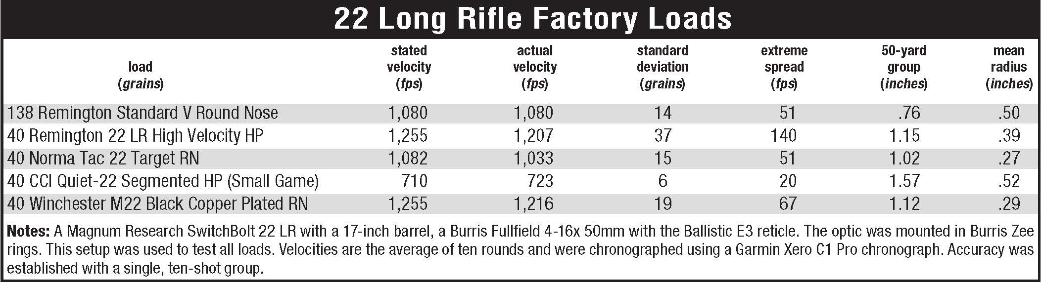 The 40-grain Norma Tac-22 proved to be the most accurate and reliable ammunition type tested of the 250 rounds put through this rifle. There was not a single malfunction.