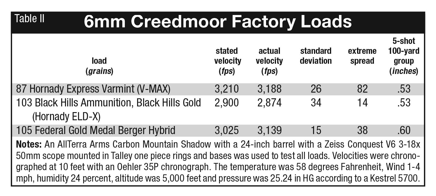 Upon reflection and review of the overall performance, this AllTerra Carbon Mountain Shadow rifle chambered in 6mm Creedmoor, checks a lot of boxes for the versatile varmint rifle. It is capable of benchrest-level accuracy with many groups hovering around the .3-inch mark. The recoil is managed well enough thanks to the muzzle brake to be able to self-spot misses and hits. Something important for long shots in choppy winds at shifty critters. The rifle’s overall weight is more than reasonable to carry for hunting big game or for walking varminting. It seems an ideal bolt gun for coyotes and is capable of launching bullets with impressively high-ballistic coefficients for work at extended ranges, while still able to utilize heavier bullets of proper construction for use on mule deer, antelope and similar-sized game.